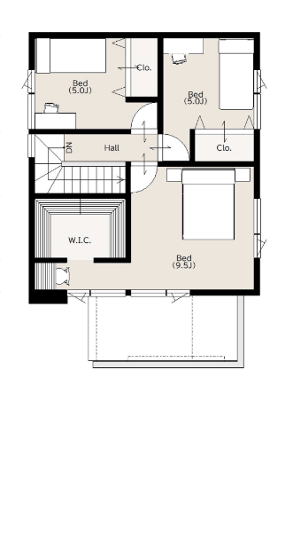 1.5帖の書斎は自分専用の集中空間。収納力ありの片付く間取り。